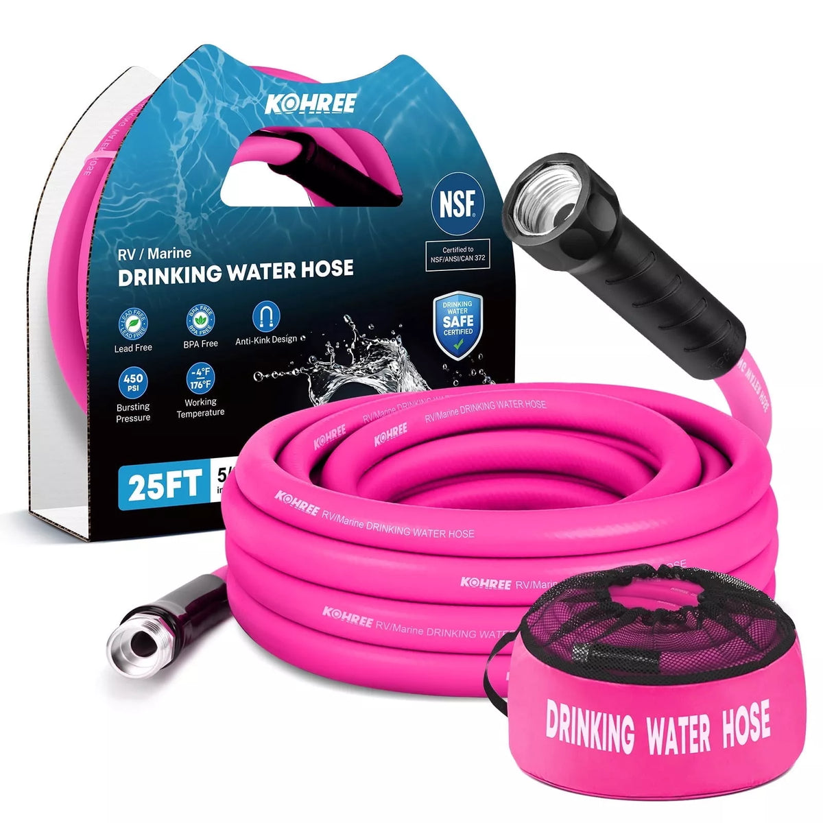 Kohree NSF Certified 5/8" RV Drinking Water Hose – Lead-Free & Anti-Kink