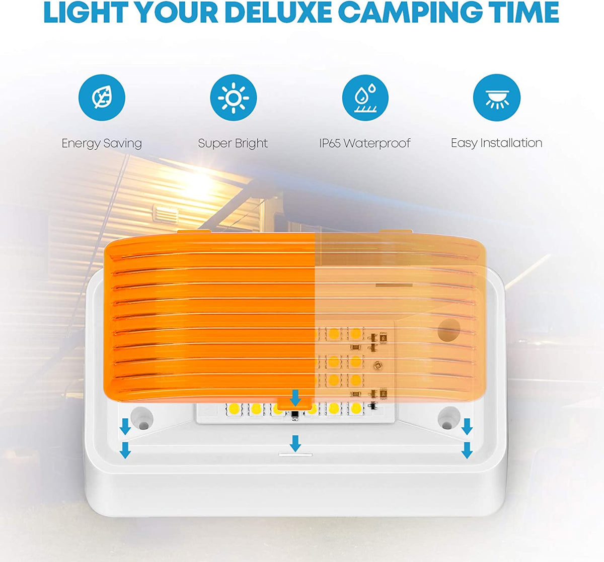 Installation of the Kohree RV Porch Light is effortless, thanks to its easy polarity connection (red wire for positive and black wire for negative) and included nuts and screws to hold it in place directly. This light is waterproof with an IP65 rating, meaning the LED panel is entirely sealed with resin, preventing water from getting in, even when you take off the lens.