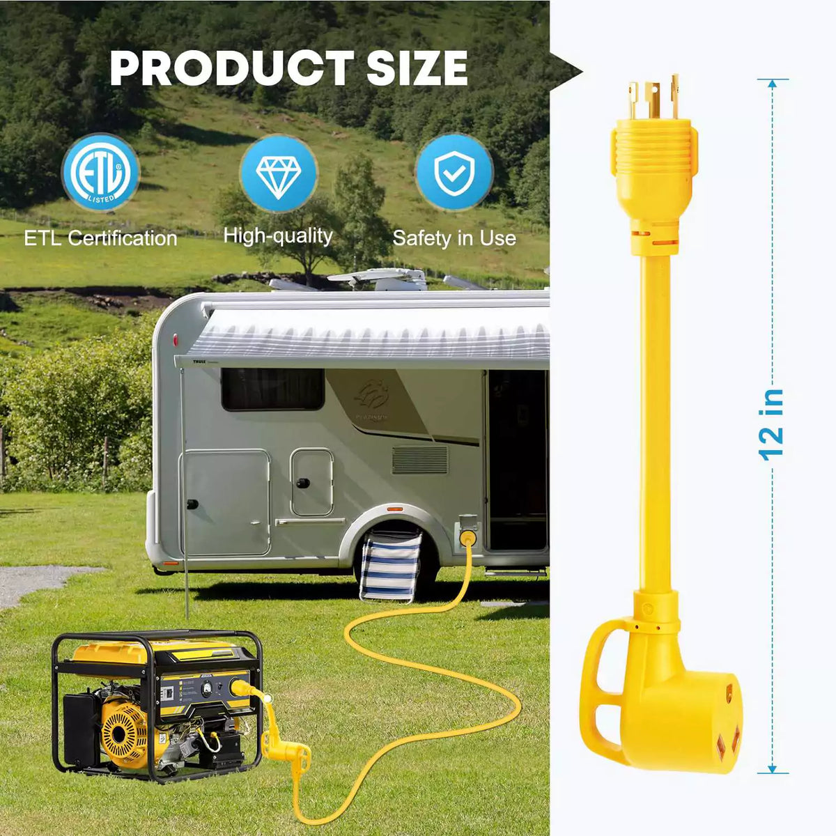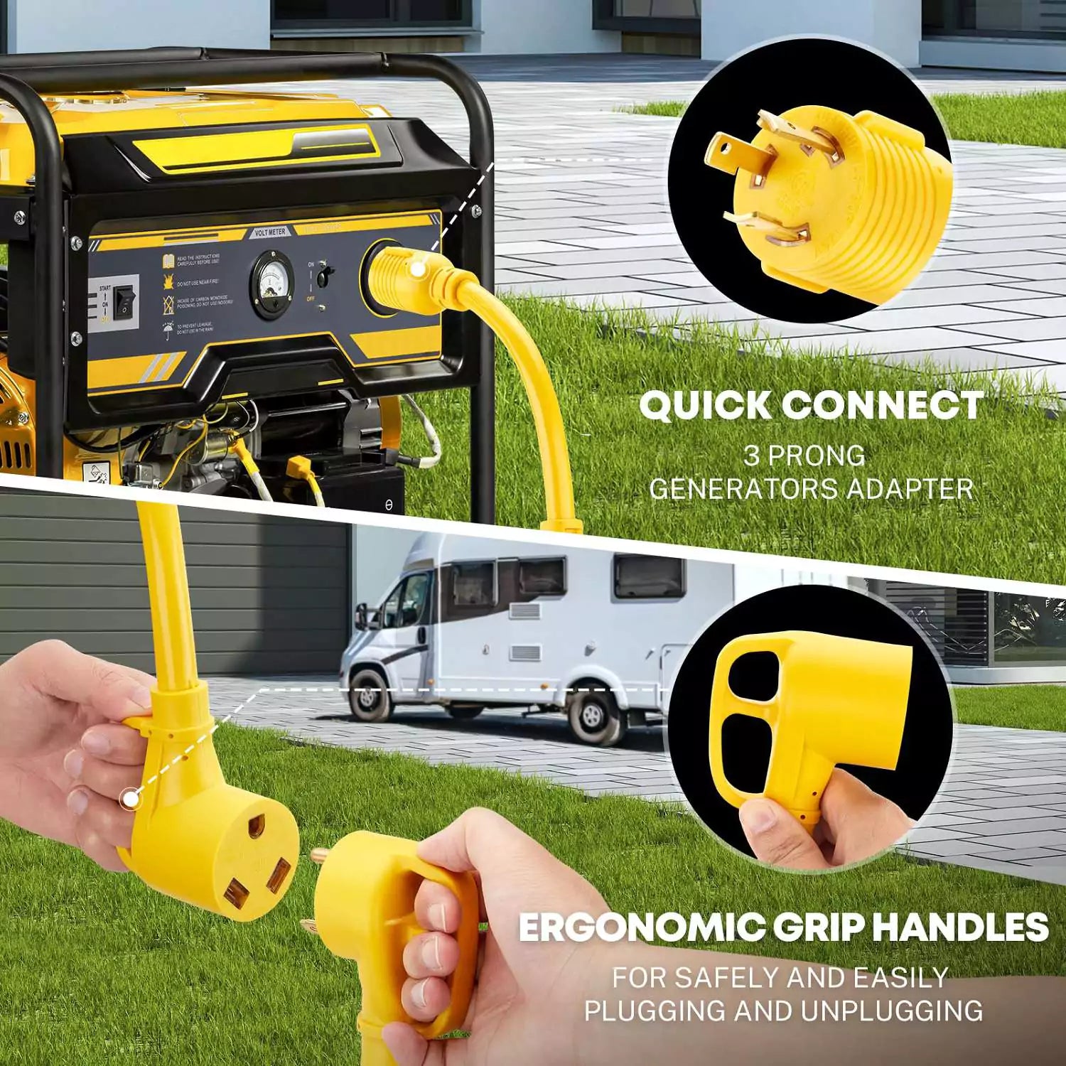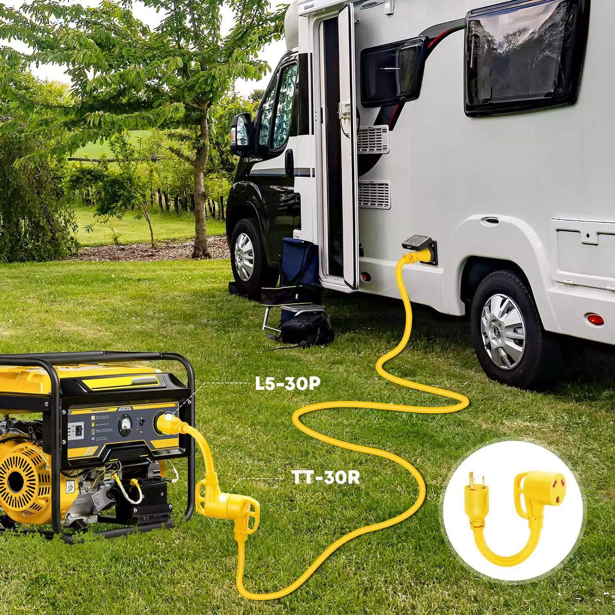 • Optimal RV Power Solution in Emergencies: When your generator lacks a TT-30R outlet, this adapter emerges as an essential tool. Tailored specifically for powering your 30A recreational vehicle straight from the generator, it ensures uninterrupted comfort during unforeseen power outages, keeping your adventures fully charged.