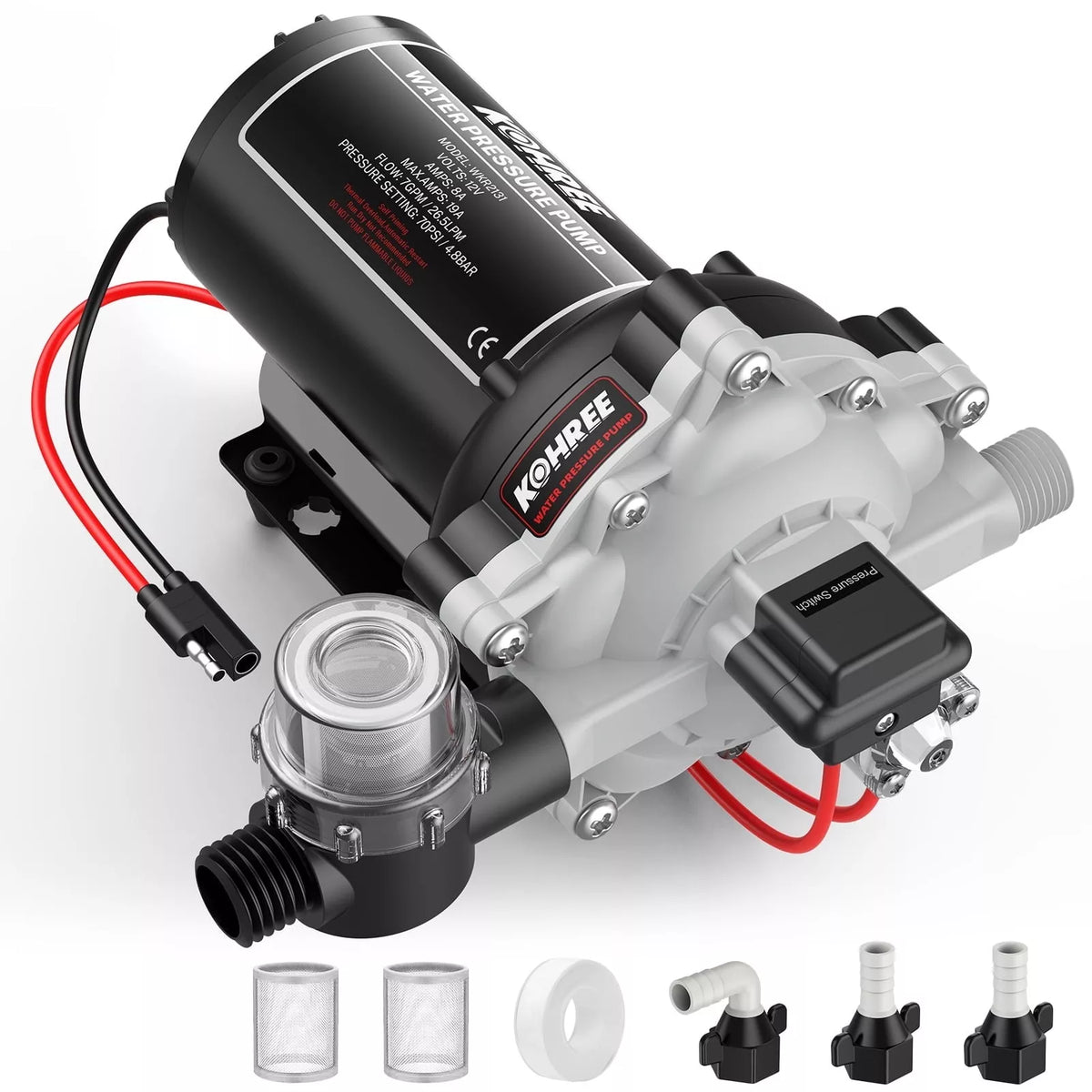 • Efficient Water Flow: The KOHREE 12V water pump boasts a flow rate of 7 gallons per minute, ensuring a steady and reliable water supply for your RV.