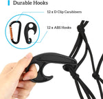 For easy and instant setup, this stretch cargo net comes with 12 D-shaped aluminum clip carabiners and 12 ABS hooks that enable you to strap down the loads firmly without tangling. The included drawstring storage bag provides great convenience to store all accessories and the cargo net under the seat, in the trunk, or garage, trailer & pickup truck lock box.